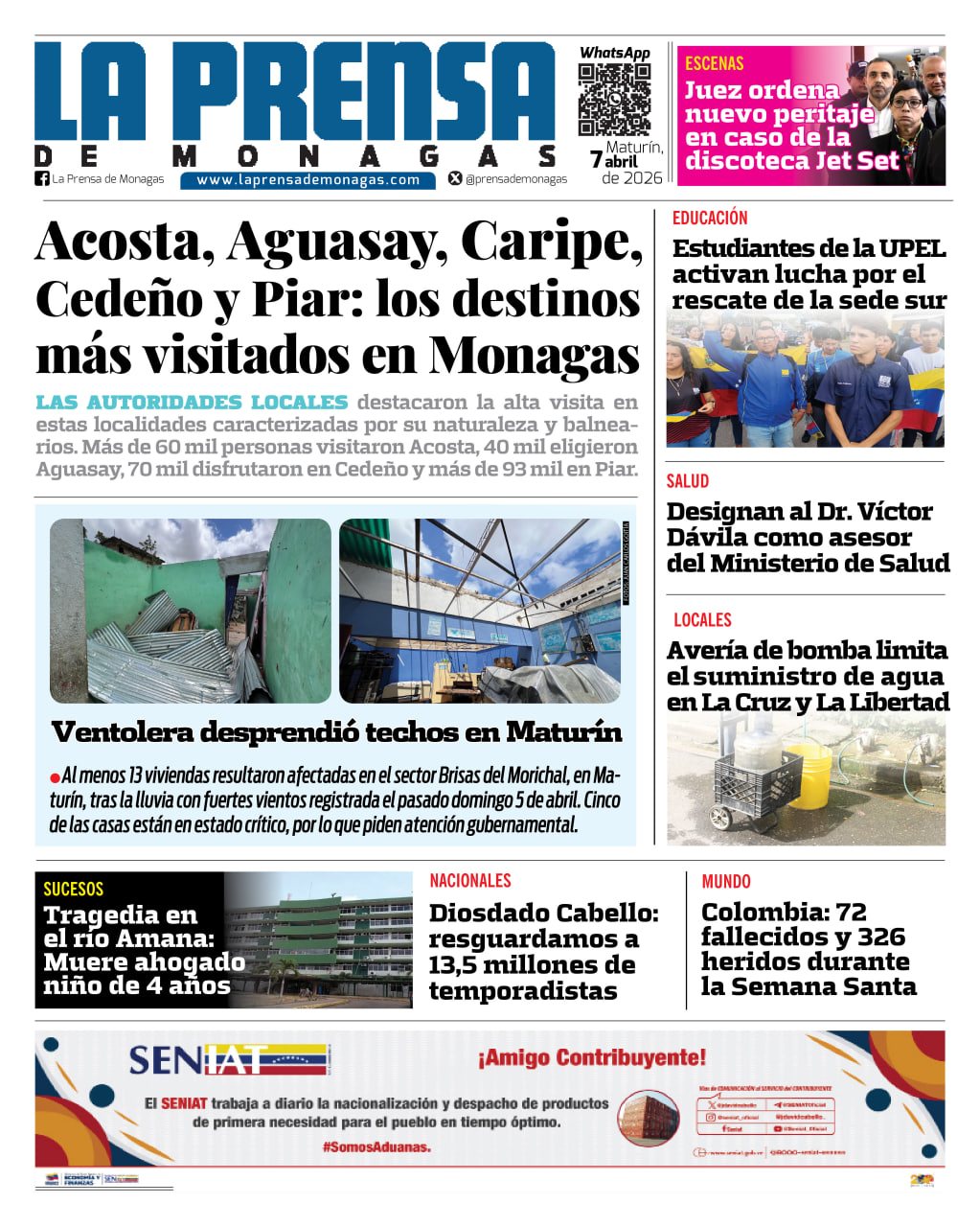 Los destinos con mayor demanda fueron los municipios Caripe, Bolívar, Ezequiel Zamora y Acosta