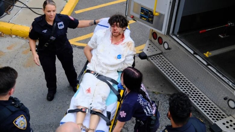 De hecho, el mismo New York Post, informó con un video y fotos que Hurstel, todavía ensangrentado, fue visto siendo sacado del Precinto 120 del Departamento de Policía de Nueva York en una camilla. Estaba vistiendo un traje Tyvek, antes de ir camino a la lectura de cargos prevista.