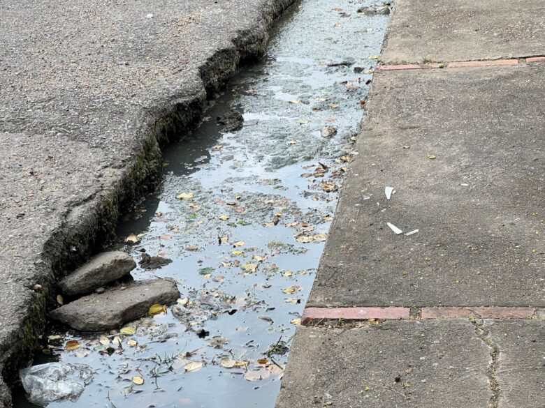 Según los afectados, se trata de aguas estancadas mezcladas con desperdicios de comida provenientes de un negocio cercano, situación que se origina específicamente a la altura del antiguo Circuito Judicial.