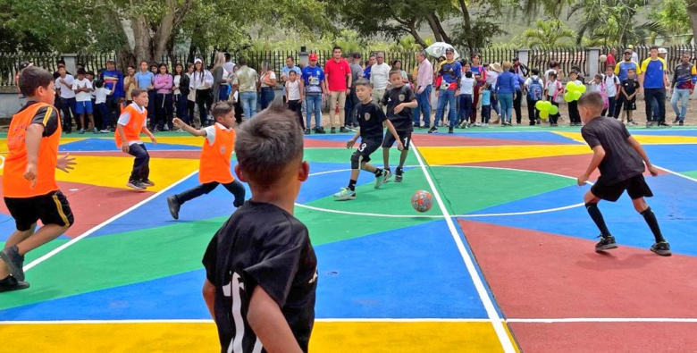La escuela Simón Bolívar de la población El Rincón, del municipio Acosta del estado Monagas, ahora cuenta con una cancha totalmente recuperada, gracias al alcalde Jesús ‘Chuo’ Velásquez quien le hizo labores de pintado y recuperación de los aros y tableros de baloncesto.