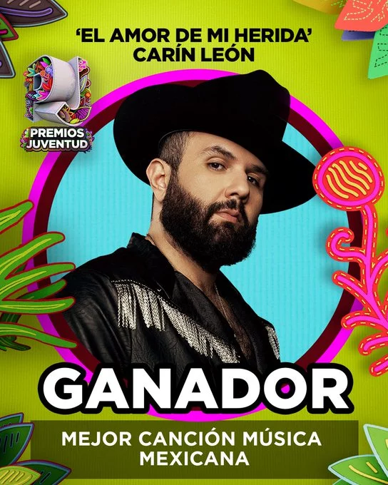 La música mexicana tuvo su espacio con Carín León, premiado en la categoría “Mejor Canción Música Mexicana”, reflejando la creciente fuerza del género en el mercado internacional.