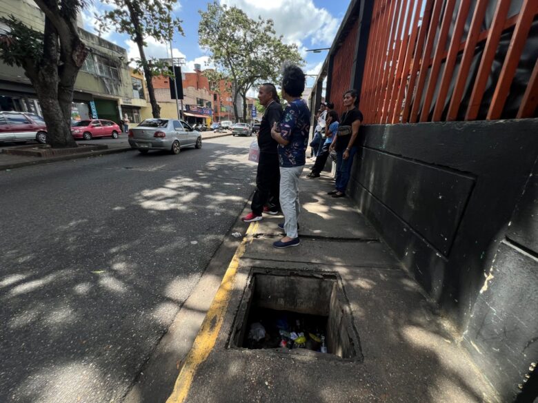 “Esto ya tiene más de un año así. Es un gran peligro porque el hueco está precisamente en una parada; aquí se han caído niños, adultos mayores y personas al bajar de los autobuses. Además, de esa alcantarilla emanan olores fétidos que perjudican gravemente a los negocios de comida cercanos”, denunció Luis González.