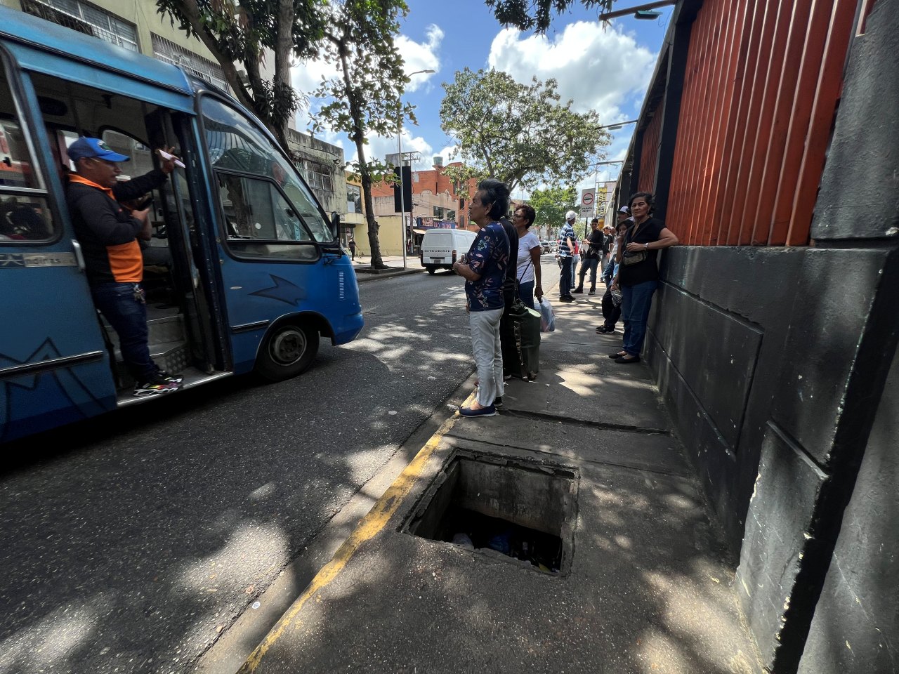 “Esto ya tiene más de un año así. Es un gran peligro porque el hueco está precisamente en una parada; aquí se han caído niños, adultos mayores y personas al bajar de los autobuses. Además, de esa alcantarilla emanan olores fétidos que perjudican gravemente a los negocios de comida cercanos”, denunció Luis González.