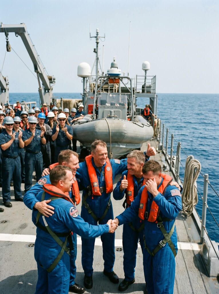 Los cuatro astronautas —el comandante Reid Wiseman, el piloto Victor Glover y los especialistas Jeremy Hansen y Christina Koch— fueron extraídos de la cápsula mediante botes de rescate y trasladados rápidamente en helicóptero para su evaluación médica inicial. Las primeras imágenes oficiales mostraron a la tripulación sonriente y en excelente estado de salud, confirmando el éxito operativo de los sistemas de soporte vital.