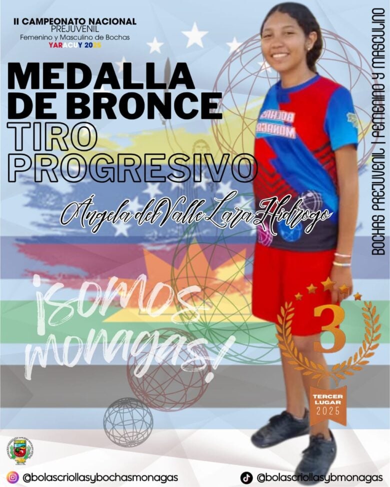 ​La selección de Bochas del estado Monagas logró una actuación sobresaliente en el II Campeonato Nacional Prejuvenil, celebrado en San Felipe, estado Yaracuy, del 1 al 6 de octubre. La delegación azulgrana conquistó un total de cuatro medallas, dos de oro y dos de bronce, posicionando a la entidad en lo más alto de la disciplina a nivel nacional.