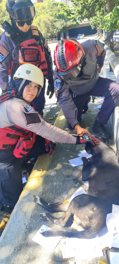 Tras el accidente, el can quedó tendido e inmóvil sobre una acera, imposibilitado para moverse por sus propias fuerzas. Afortunadamente, ante los reportes ciudadanos difundidos a través de grupos de emergencia y redes sociales, el equipo de paramédicos conocidos como los «Ángeles de la Autopista» se desplazó rápidamente al lugar.