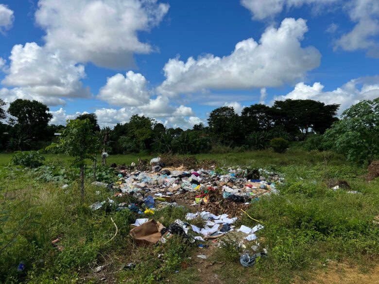 Agrega que quieren convertir el terreno en un espacio productivo, pero señala que no pueden iniciar con ese proyecto ya que primero deben limpiarlo. La basura y la maleza generan la proliferación de mosquitos y moscas, y enfermedades para los habitantes de la comunidad.