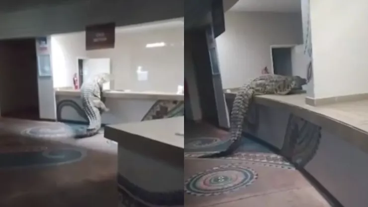 Un enorme cocodrilo del Nilo desató el pánico y el asombro al ingresar a la cocina del prestigioso Victoria Falls Hotel, en Zimbabue. Cámaras de seguridad captaron al reptil mientras se arrastraba por el área de preparación de alimentos e intentaba trepar con dificultad sobre los mostradores metálicos de servicio.