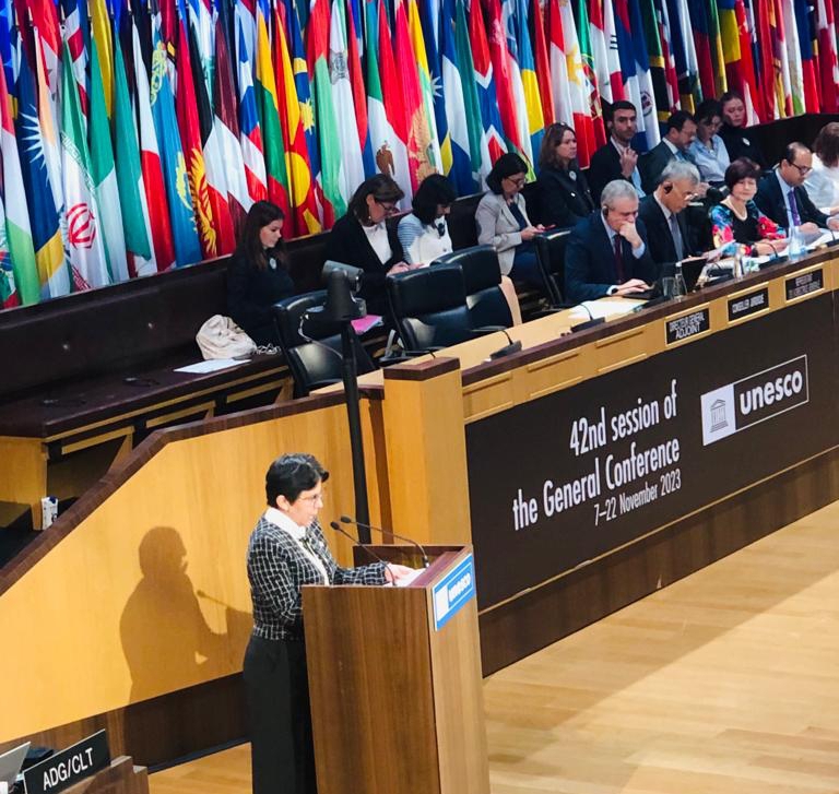 La ministra del Poder Popular para Educación Universitaria, Sandra Oblitas, recibió la distinción de manos del subdirector de Cultura de la Unesco, Ernesto Ottone, en el marco de la 42º Conferencia General que se celebró en París, Francia, del 7 al 22 de noviembre.