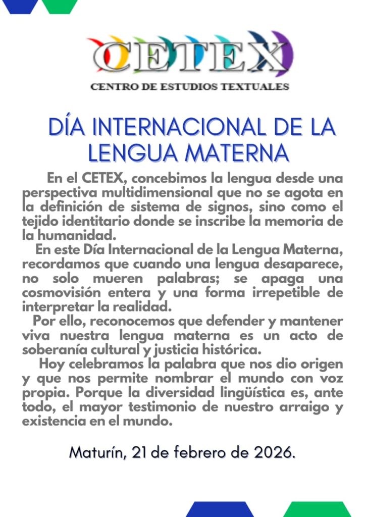 El Centro de Estudios Textuales (CETEX), el órgano de investigación lingüística y literaria más longevo del Instituto Pedagógico de Maturín, conmemora hoy, 21 de febrero, el Día Internacional de la Lengua Materna.