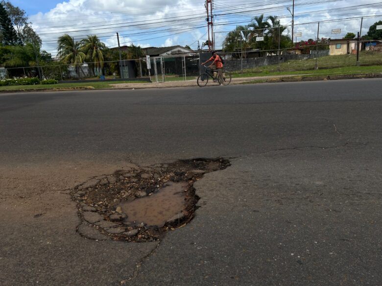 «Es que tienen años que no realizan labores de asfaltado en las calles del municipio. Se forma un hueco pequeño porque el asfalto está desgastado y, como no le prestan atención sumado a la gran cantidad de vehículos que pasan, el problema crece», agregó un comerciante que prefirió no identificarse.