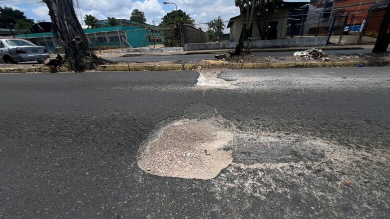 Conductores del transporte público que transitan a diario por la avenida 4 del sector Los Guaritos I, justo frente a la Universidad Nacional Experimental Simón Rodríguez (Unesr) de Maturín, reportan dos grandes baches en medio de la vía que dificultan el tránsito.
