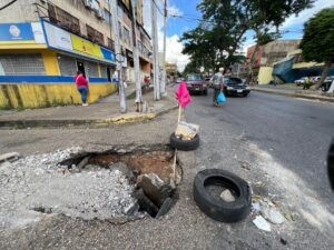 Por otra parte, en la calle 26, antiguamente conocida como calle La Esperanza, adyacente a la Torre Coffel, en Maturín, vecinos también denunciaron que desde hace siete días se abrió un megahueco en la entrada de esta calle, situación que perjudica a quienes transitan por la zona e incluso a los más de cinco negocios que hay en el lugar.