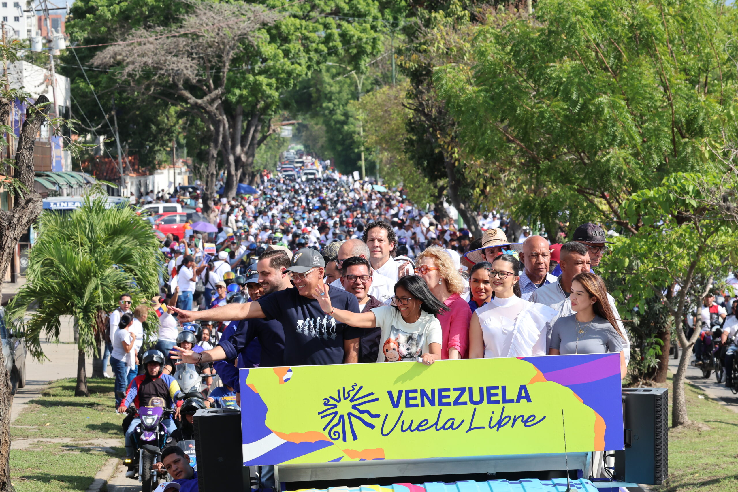 Durante el recorrido, la presidenta (E) Delcy Rodríguez, estuvo por las cercanías de la Redoma del Obelisco, icono histórico de la capital larense, donde miles de ciudadanos se congregaron, bajo un ambiente de paz, donde la exigencia común fue el respeto a la soberanía nacional y la devolución de los activos del país en el exterior.