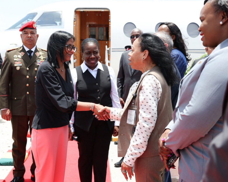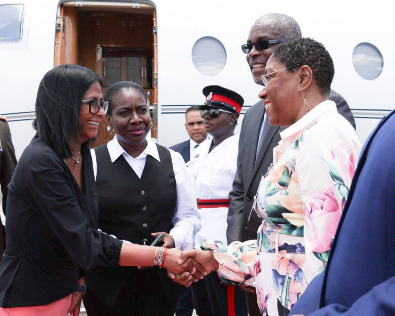Rodríguez fue recibida a su llegada al aeropuerto por el primer ministro de Granada, Dickon Mitchell, cuya oficina calificó la visita de «un importante momento de compromiso y diálogo entre Granada y la República Bolivariana de Venezuela».