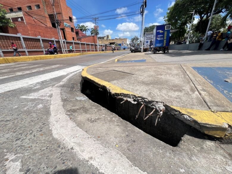 Ciudadanos de Maturín reportan un peligroso desagüe ubicado entre la avenida Miranda y la calle Azcúe, justo detrás de la plaza Rómulo Gallegos.