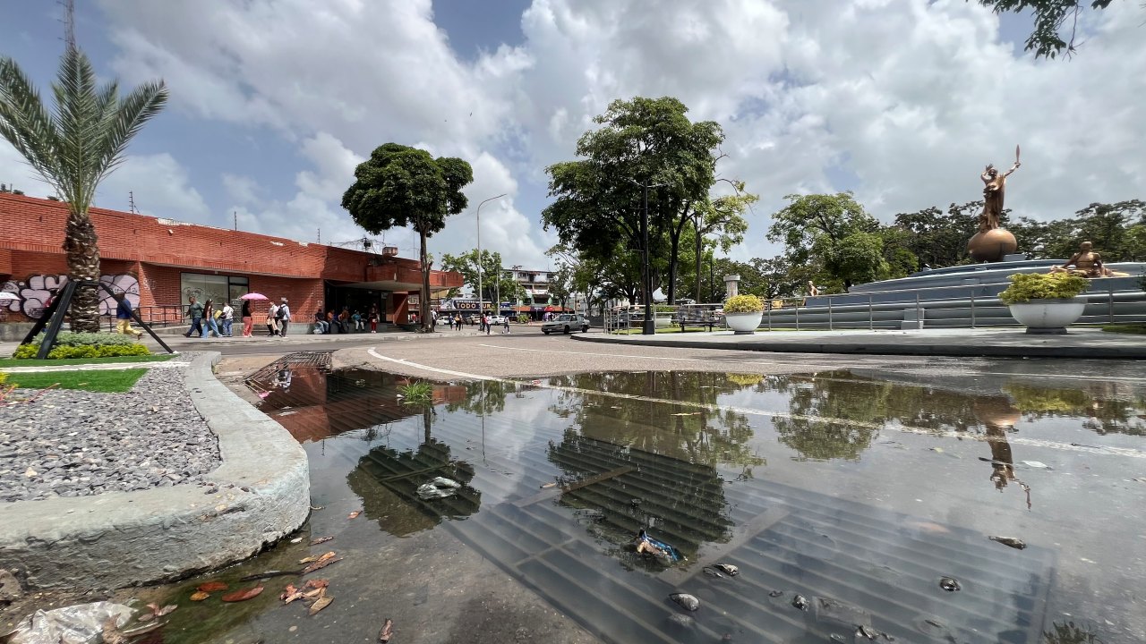 Un desborde de aguas servidas empaña la redoma Juana Ramírez «La Avanzadora», en pleno casco central de Maturín. Esta situación genera una gran incomodidad tanto para los ciudadanos que transitan a diario por la zona como para los comerciantes cercanos.