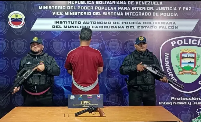 Un llamado de auxilio facilitó la acción de los funcionarios de Policarirubana que resultó con la aprehensión de un comerciante valenciano que en medio de una fuerte discusión amenazaba a su esposa con un arma de fuego, en el estado Falcón.