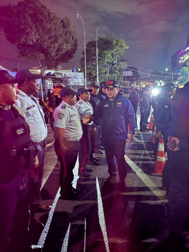 Por su parte, el director del Cuerpo de Investigaciones Científicas, Penales y Criminalísticas (Cicpc), Douglas Rico, informó en sus redes sociales que realizó un recorrido por las principales avenidas de la capital. Durante la jornada, supervisó y acompañó a los funcionarios del Cicpc y demás cuerpos policiales en sus labores de vigilancia.