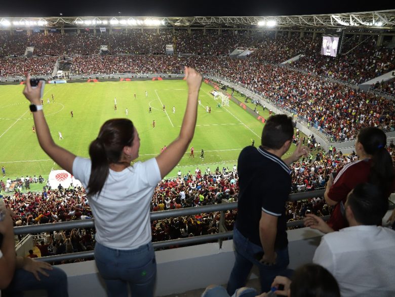 La alegría de los más de 50 mil aficionados que celebraron el triunfo de la selección de Venezuela ante Paraguay hicieron del estadio El Monumental el escenario de la fiesta del fútbol venezolano.