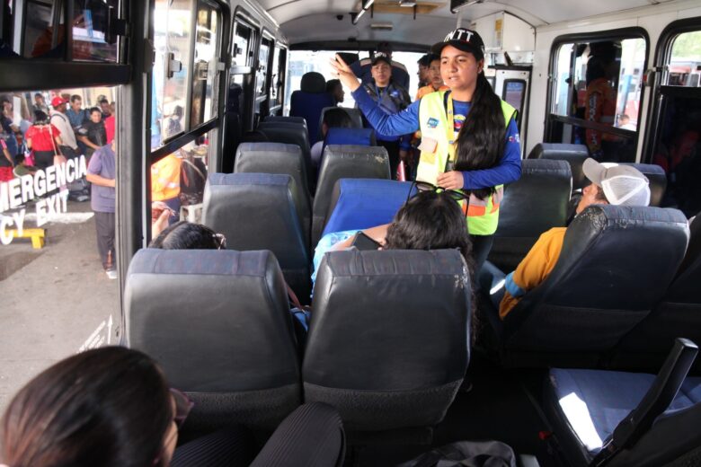 - Revisión Vehicular: Funcionarios policiales asisten a los choferes en la verificación mecánica de las unidades.