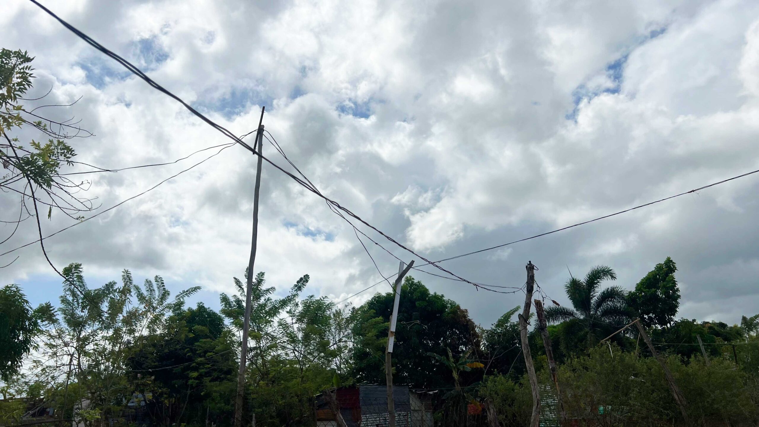 Ante la falta de postes eléctricos los residentes están conectados de forma precaria a un poste de un sector vecino