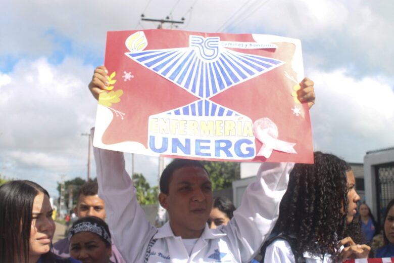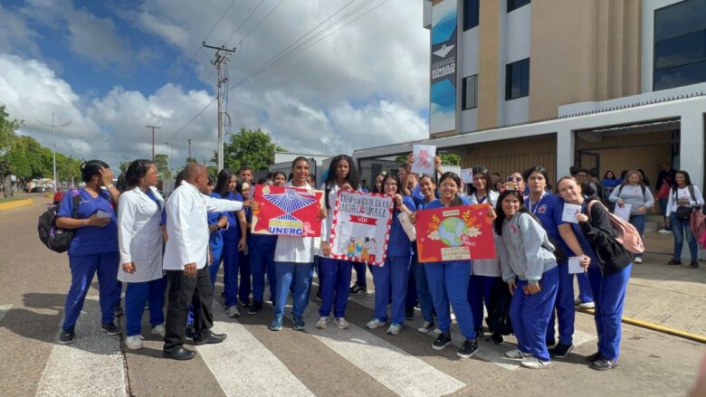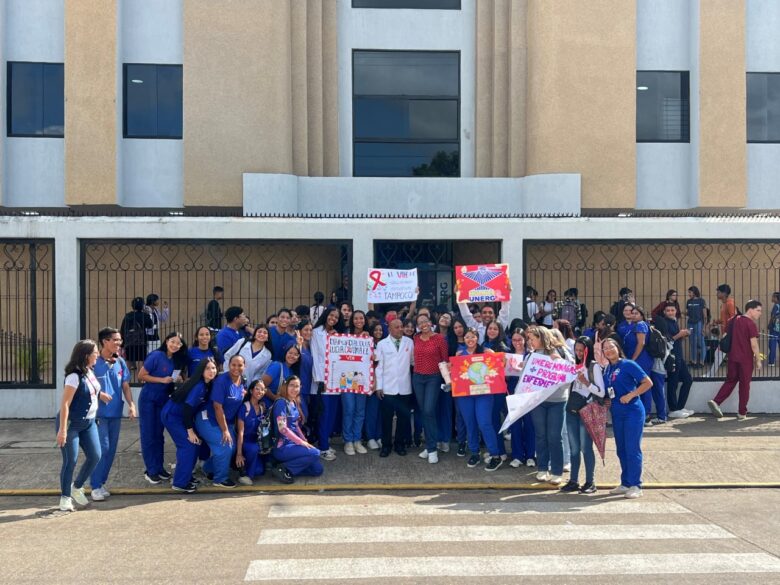 Más de 100 estudiantes de Enfermería y Medicina de la Universidad Nacional Experimental Rómulo Gallegos (Unerg) sede en Maturín, realizaron un pancartazo en prevención del Día Mundial de la Lucha contra el Sida.
