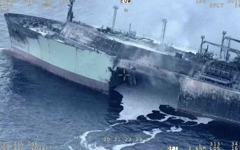 Según explicó el mismo organismo, el buque emitió una llamada de socorro la noche del martes. Las explosiones se vieron seguidas de “un enorme incendio que causó el completo naufragio” de la nave.