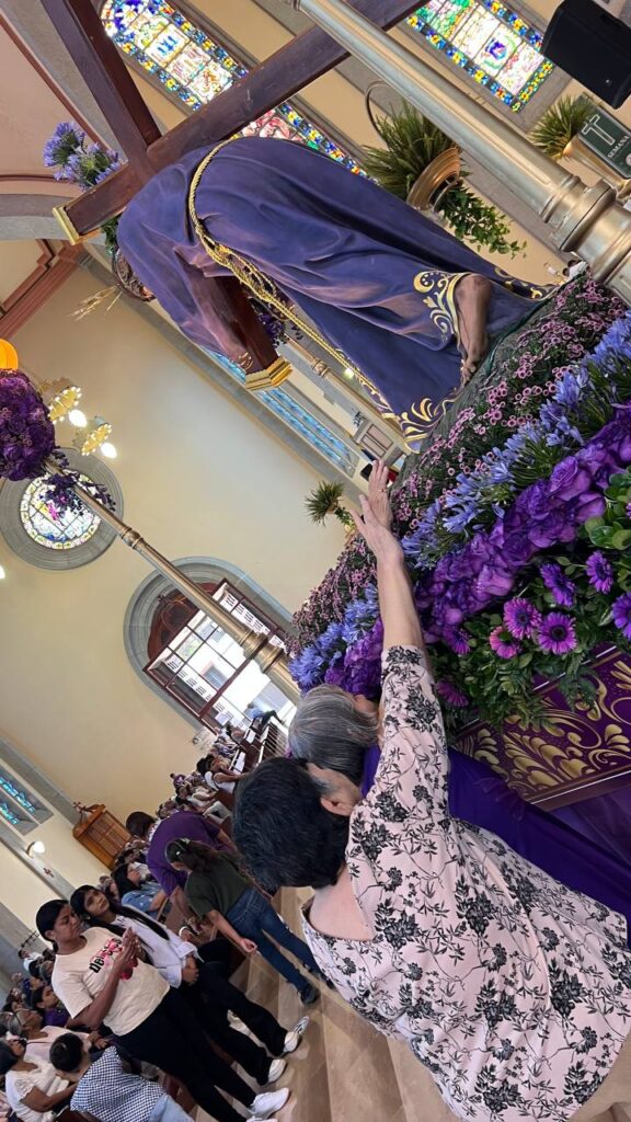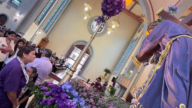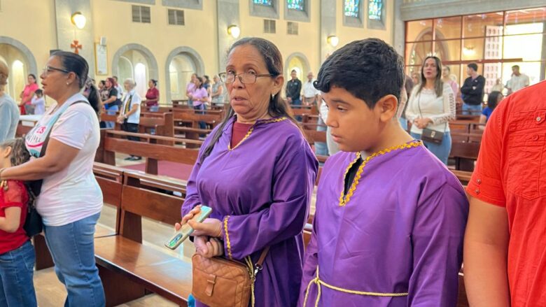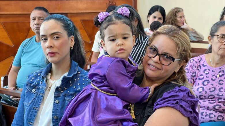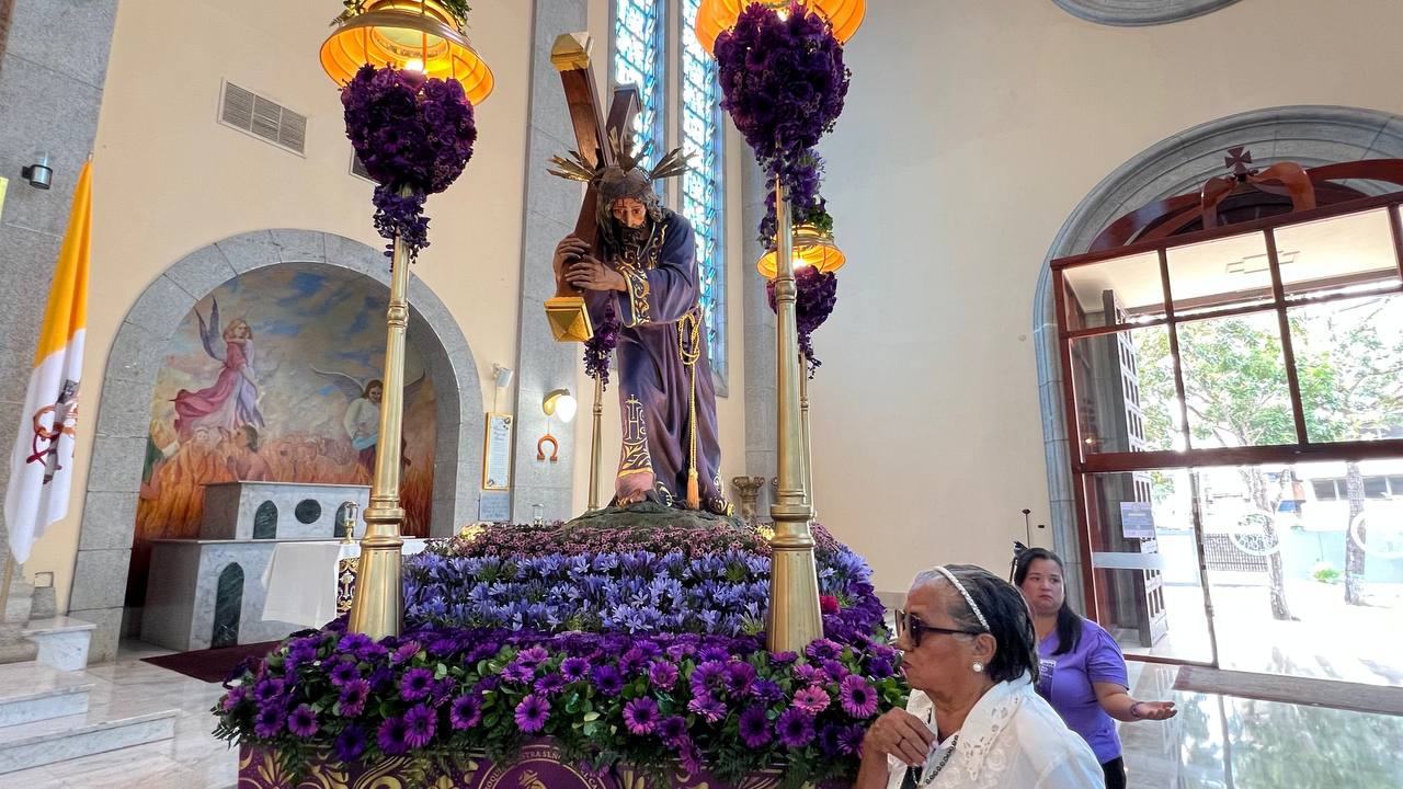 ​»Desde mi infancia en el seno de la Iglesia Católica, solíamos venir a venerar la sagrada imagen del Nazareno. Mi hijo es un milagro y hoy vengo a pedir por la salud de mi familia. A Dios se le pide fortaleza espiritual y la misma templanza que Él tuvo al cargar con la Cruz. Siempre asisto con mi hermana y, por la tarde, durante la procesión, se unen mis hijos y mi madre para caminar junto al Señor», señaló con devoción la fiel Roxy Mota.