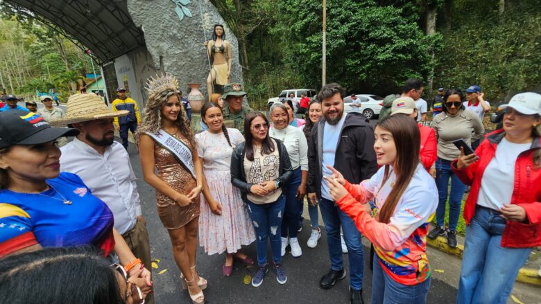 En Caripe la comitiva fue recibida en el arco de entrada del municipio por la reina del Carnaval del municipio, Nicolle González, y representantes de la comunidad.