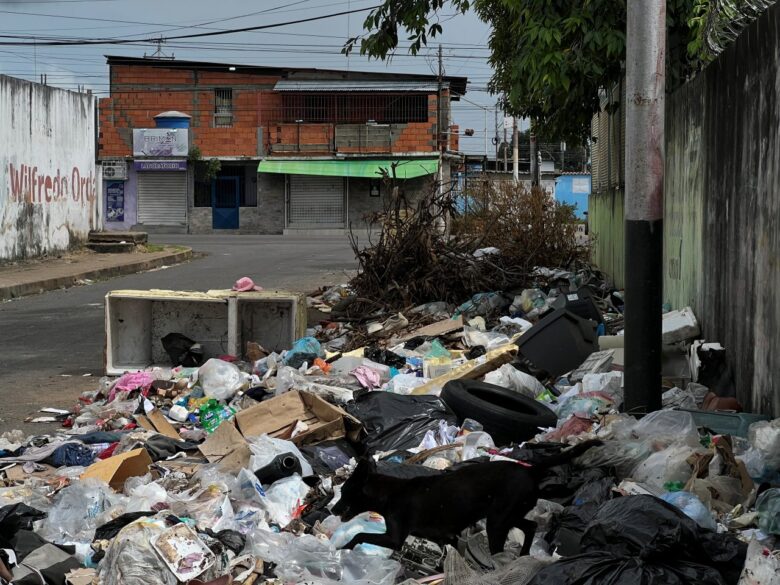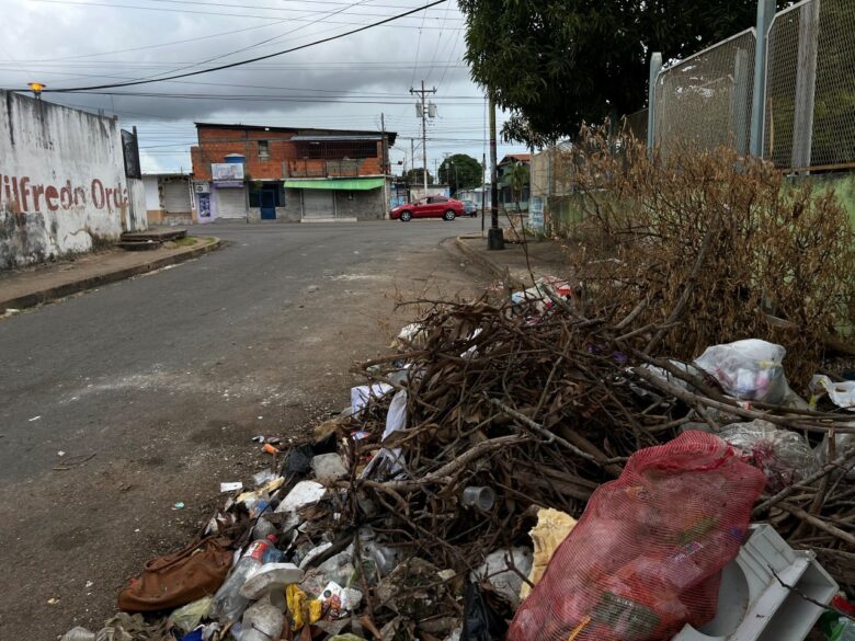 La calle principal de Fundemos es otra arteria vial donde se observó acumulación de basura en varios tramos. Ante las constantes fallas en el servicio de recolección, los vecinos aseguran que no les queda otra opción que llevar los desperdicios hasta la avenida principal para que el camión se los lleve cuando pase.