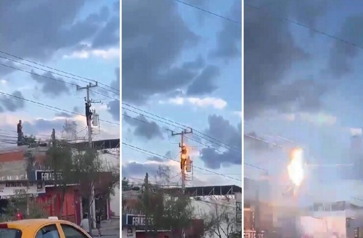 No pasó mucho tiempo para que el hombre hiciera contacto con un cable, desencadenando así su electrocución.
