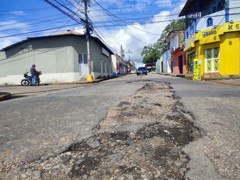 Habitantes de la calle Junín y Barreto del municipio Maturín denuncian la presencia de un enorme bache que genera un gran peligro para los conductores y peatones que pasan por el lugar.