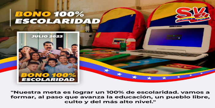 Este lunes 3 de julio inició la entrega del bono “100% Escolaridad”, correspondiente al mes en curso, a través del sistema Patria.