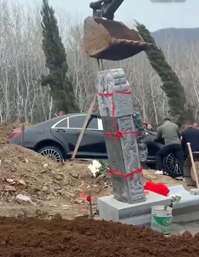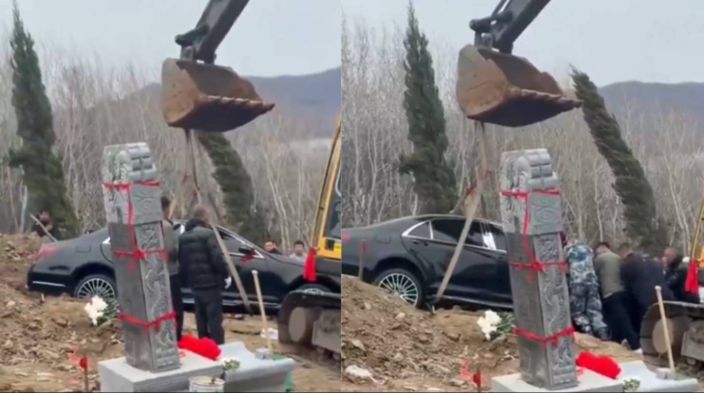Una familia china enterró a un millonario dentro de su Mercedes-Benz desafiando las estrictas leyes de austeridad del país.