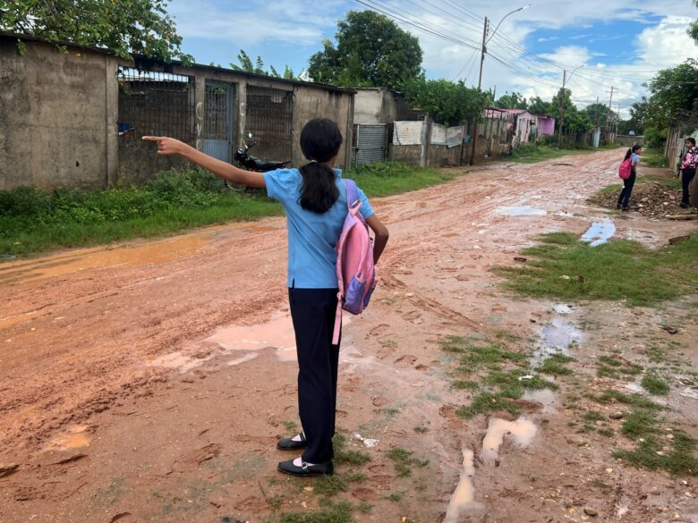 “Cuando llueve se forman lagunas que nos impiden salir de nuestras casas. Las carreteras están llenas de tierra y luego, cuando baja el agua, queda un charco que nos obliga a colocarnos bolsas en los zapatos para evitar ensuciarlos”, acota Fabiannys Ochoa, vecina.