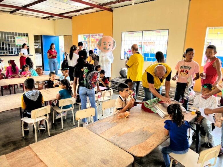 La jornada fue posible gracias a la alianza estratégica con el grupo farmacéutico Farmadon, cuyo equipo no solo facilitó la donación de medicamentos, sino que animó el evento con actividades recreativas y la presencia del personaje institucional «Don Ofertas».