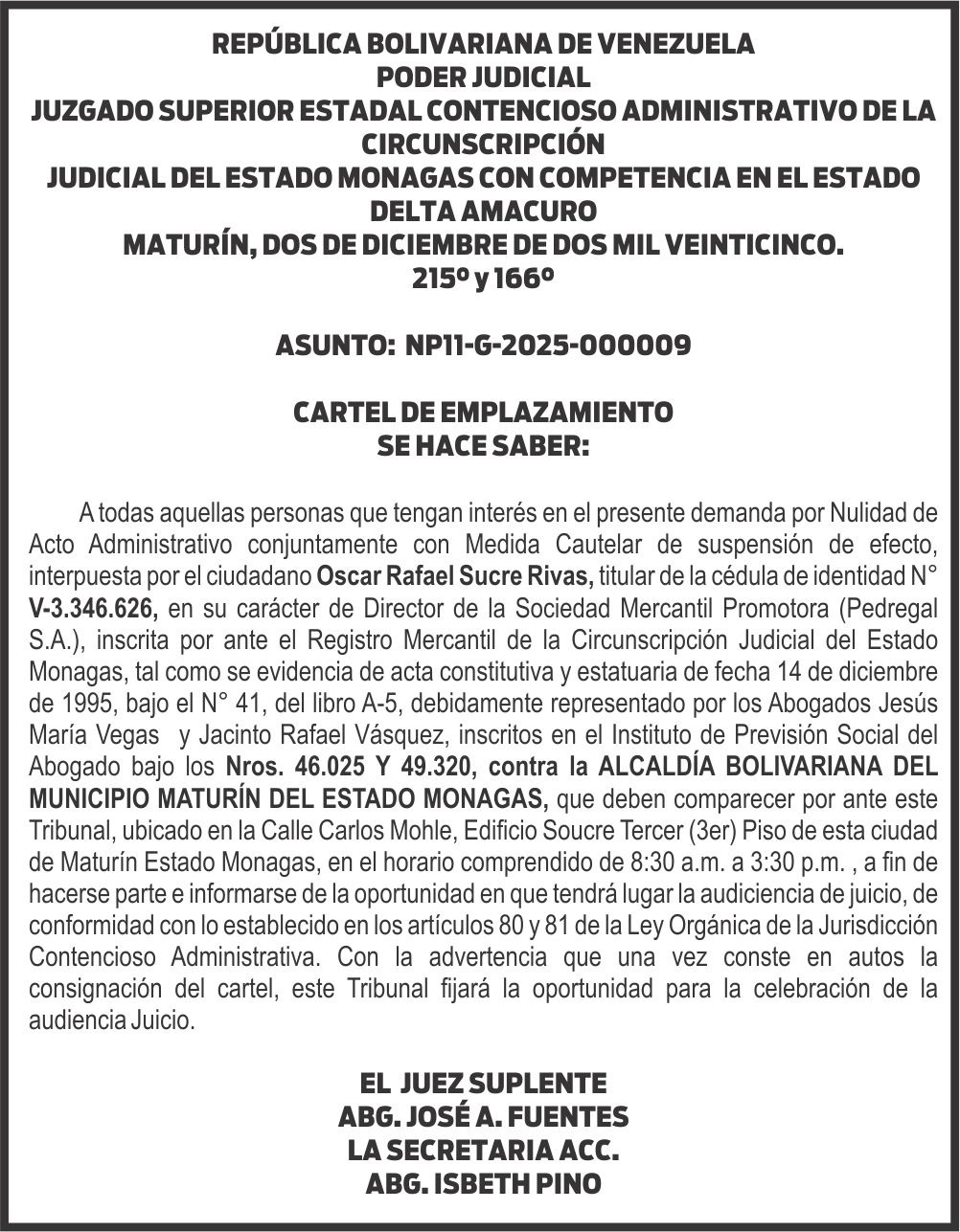 CARTEL DE EMPLAZAMIENTO CARTEL DE EMPLAZAMIENTO