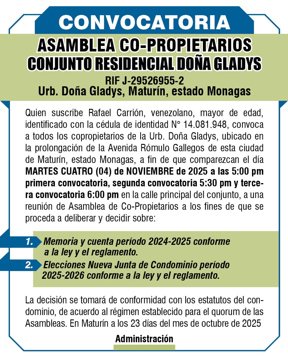 Convocatoria Doña Gladys Convocatoria Doña Gladys