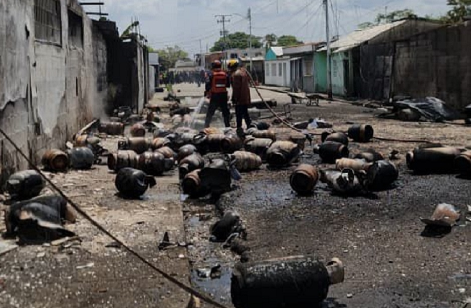 Funcionarios del Cuerpo de Bomberos y Protección Civil del estado Cojedes, acudieron al llamado de emergencia en la comunidad El Chuchango, de la ciudad de San Carlos, debido a una explosión masiva de cilindros de gas.