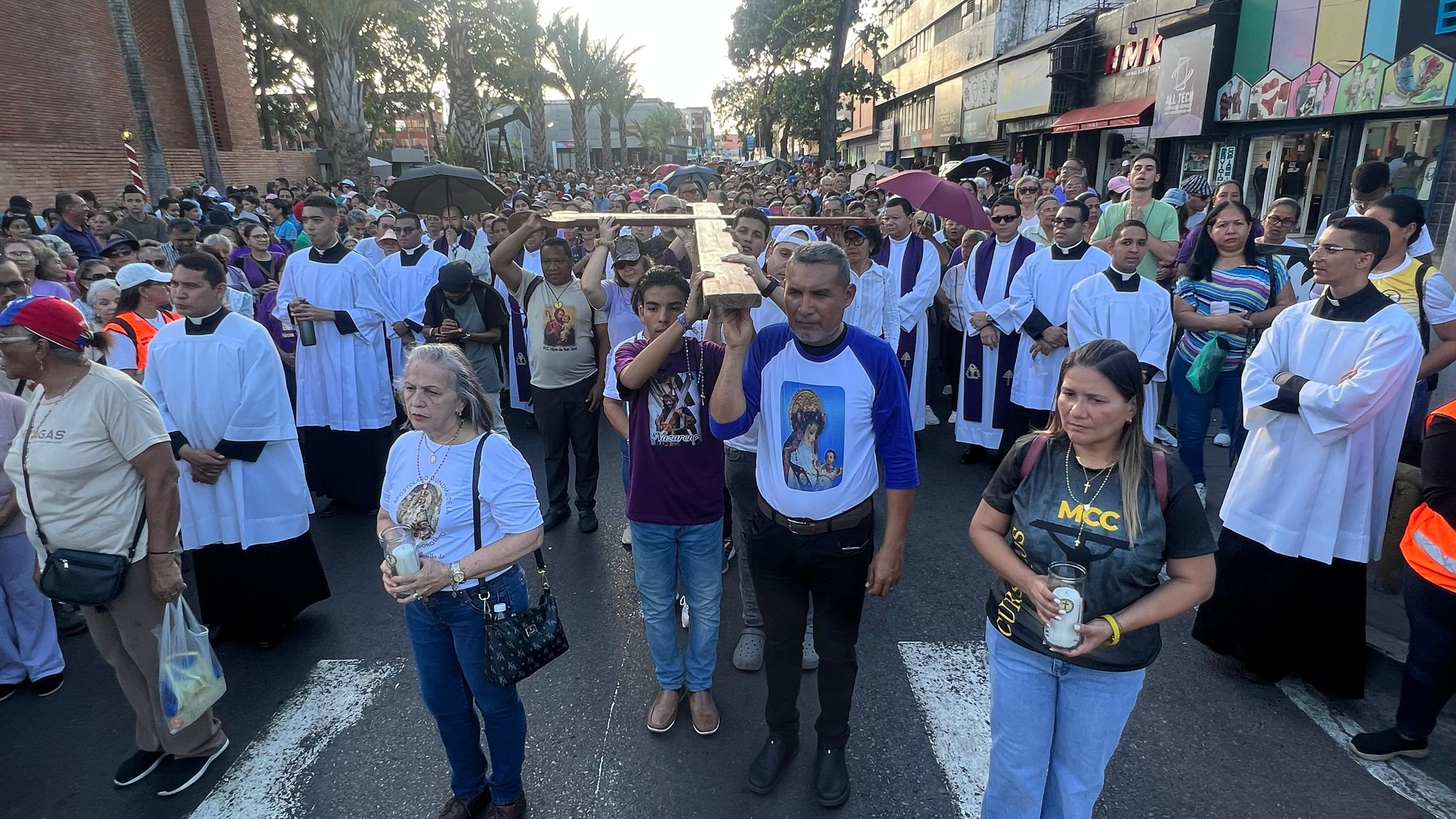 La procesión estuvo acompañada por un nutrido grupo de sacerdotes y seminaristas, quienes vistieron sus albas y estolas moradas, guiando los cantos y las estaciones del camino de la cruz. La presencia de familias enteras, adultos mayores y jóvenes demuestra que la tradición religiosa sigue siendo un pilar fundamental en la identidad del maturinés.