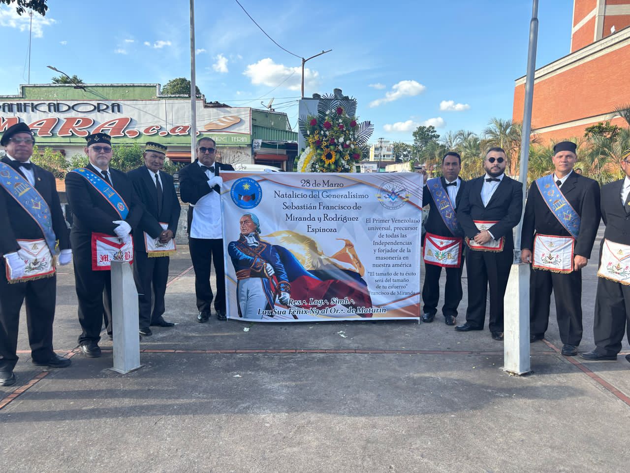 El pasado sábado 29 de marzo, la logia de masones Lux Sua Fénix n° 9, del estado Monagas, rindieron homenaje con una ofrenda floral al general Sebastián Francisco de Miranda y Rodríguez Espinoza, desde la plaza que lleva su nombre en el municipio Maturín, tras conmemorarse los 275 años de su natalicio.