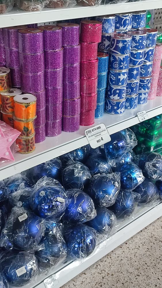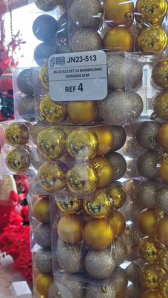 Los adornos también se encuentran en $4, $5, $6 el paquete de bolas medianas de diferentes colores, las cintas en $4, flores desde $0.35, y cascanueces desde $10, dependiendo del tamaño.