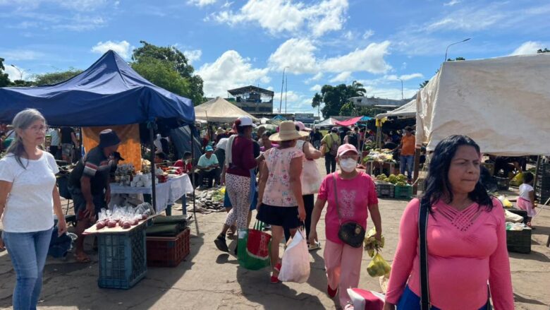Los vendedores del mercado periférico El Avión, ubicado en la avenida El Ejército, de la parroquia Alto de Los Godos, de Maturín, mantienen su jornada habitual como todos los sábados. Este 27 de diciembre, pasadas las 2:00 de la tarde, los consumidores aún se abastecían de alimentos para las festividades de fin de año.