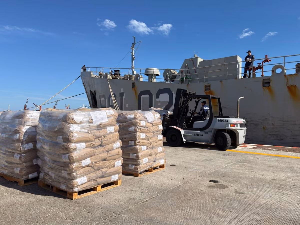 El domingo, el Gobierno mandó dos buques de la Armada de México que partieron del puerto de Veracruz abastecidos con 814 toneladas de víveres y artículos de primera necesidad