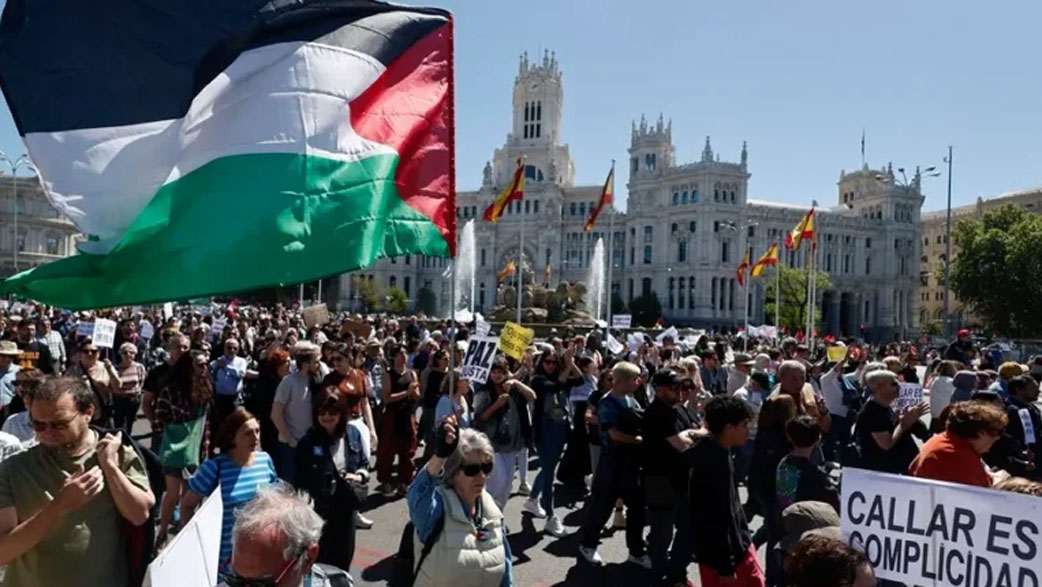 Durante el acto, se leyó un manifiesto que vinculó la estabilidad global con el fin del genocidio contra el pueblo palestino y el respeto al derecho internacional.