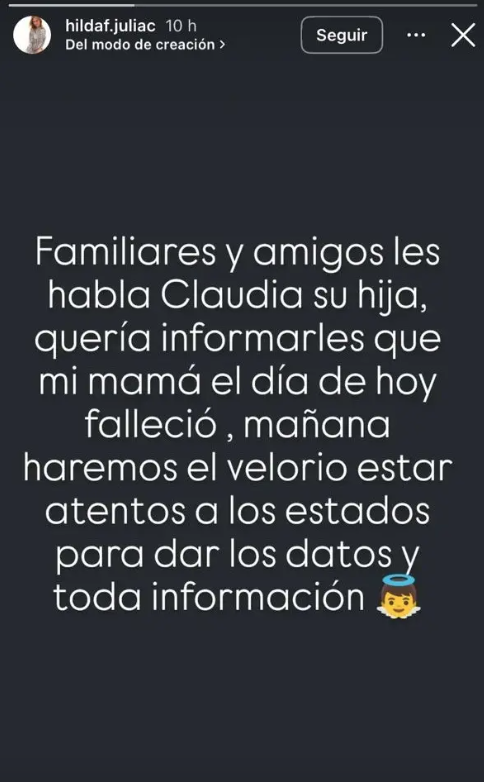 La noticia fue confirmada a través de su cuenta oficial en Instagram, donde familiares y allegados expresaron su dolor y enviaron condolencias al gremio artístico.