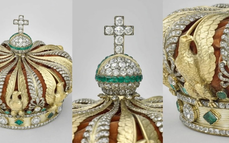 La corona, encargada originalmente por Napoleón III para la Exposición Universal de 1855, es un símbolo de la historia monárquica de Francia.