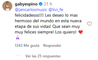 La actriz y empresaria venezolana demostró que los años pasan y una gran madurez al felicitar a su ex públicamente. Por medio de un comentario les envió buenos deseos a los novios y celebró esta nueva etapa en la vida del cantante.
