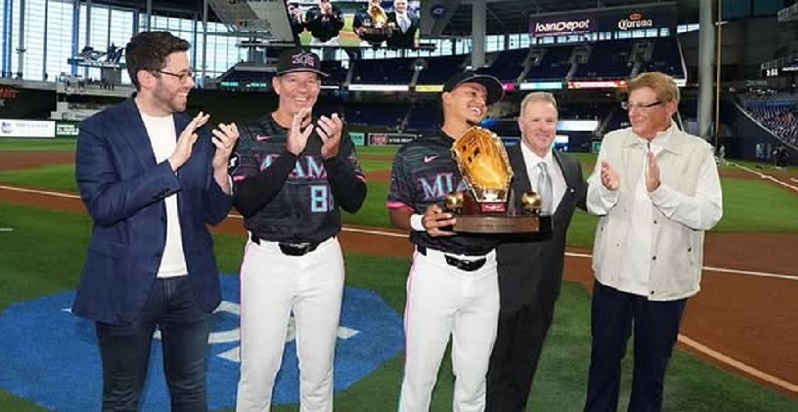 La ceremonia tuvo lugar en el LoanDepot Park, minutos antes del inicio del compromiso entre los Marlins de Miami y los Rockies de Colorado. La gerencia de la organización de Florida, junto a los familiares de Sanoja, acompañaron al criollo en el terreno para levantar el prestigioso galardón dorado.